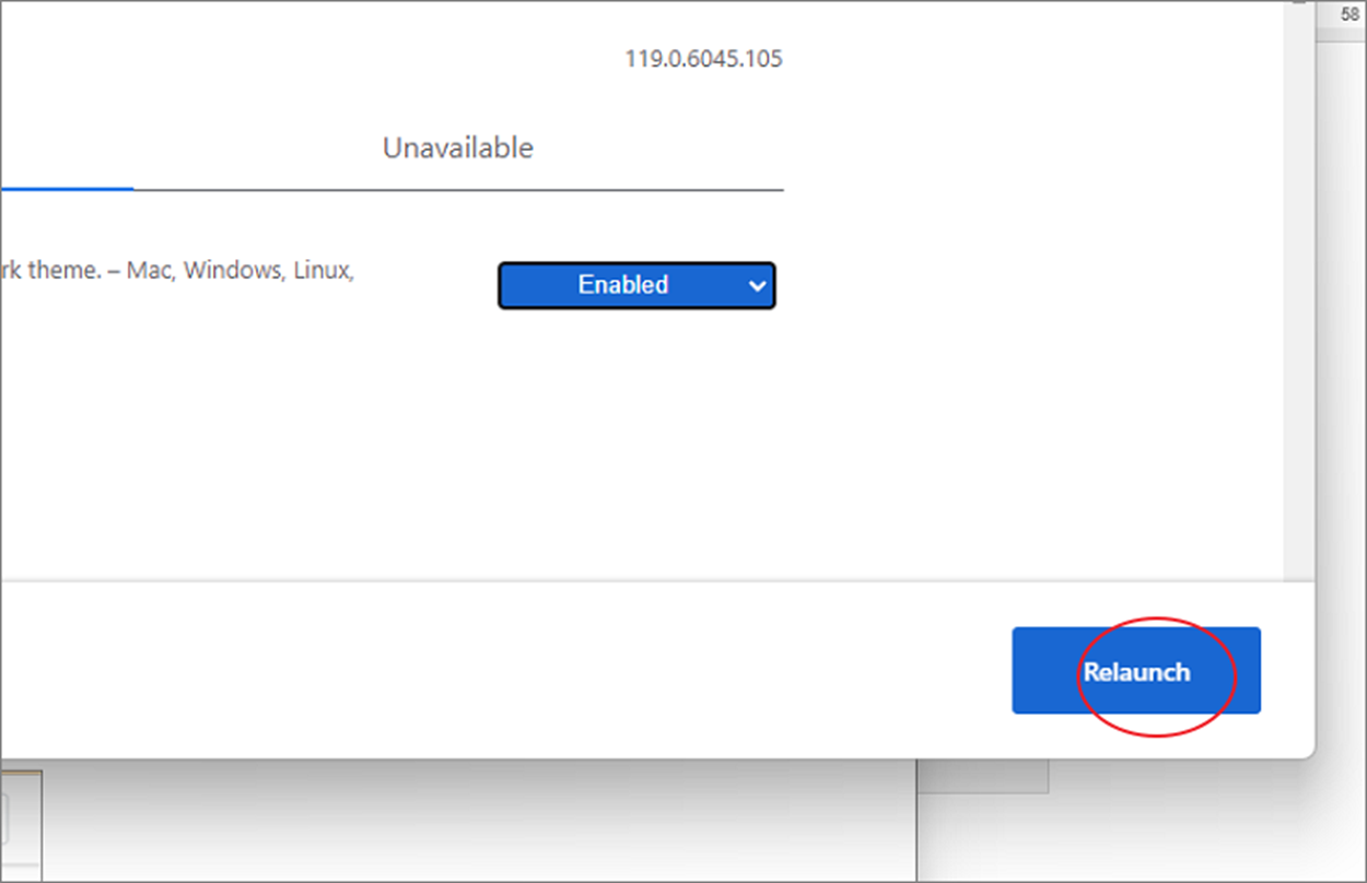 ▼ 해당 옵션을 Enabled 하고 아래로 내려가서 Relaunch 버튼을 눌러서 브라우저를 재시작합니다.