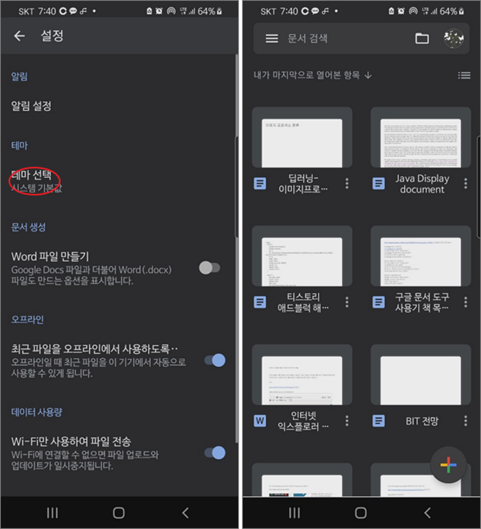스마트폰 구글 문서 도구 다크모드 설정하기