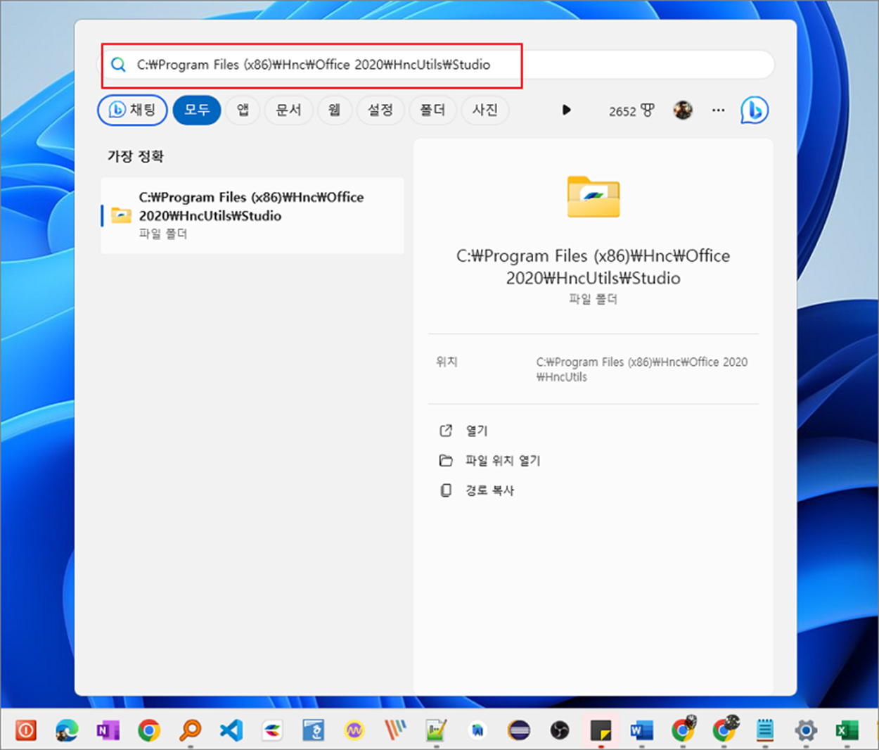 ▼ 또는 대상 항목에서 복사한 주소를 exe 파일명만 빼고 주소를 복사해서 해당 폴더로 이동해 봅니다. 시작에서 주소를 복사한 후 붙여 넣고 엔터를 눌러보세요. 바로 해당 폴더 위치로 이동한 탐색기 창이 뜰 겁니다.