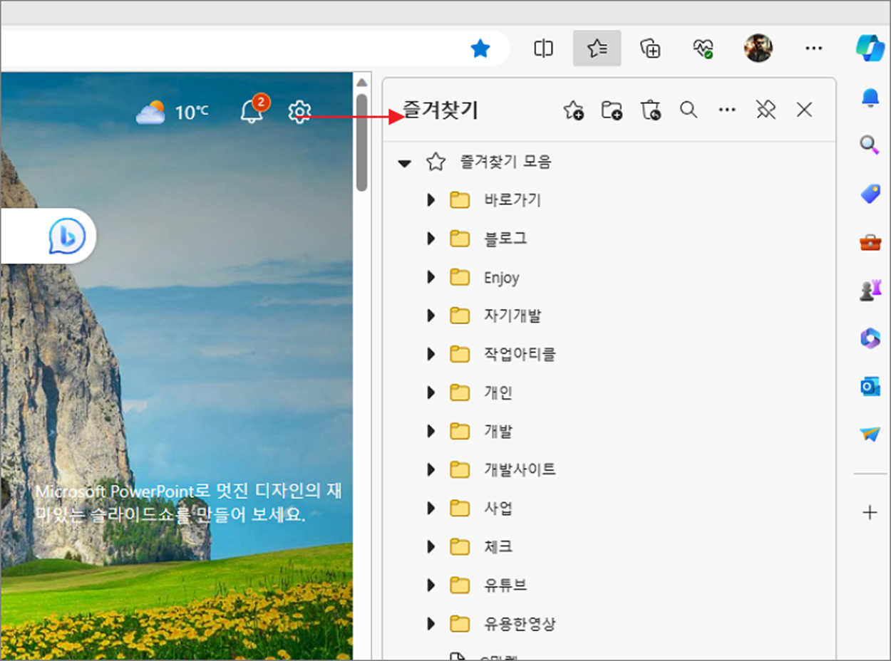 윈도우11 엣지 브라우저에는 북마크, 즐겨찾기 목록을 관리할 수 있습니다. 자주 방문하는 사이트는 브라우저에 있는 즐겨찾기 폴더로 관리하는 것이 편하기 때문에 자주 사용하는 기능입니다. 즐겨찾기 툴바를 브라우저 상단에 표시하거나 삭제하는 방법을 알아보겠습니다.