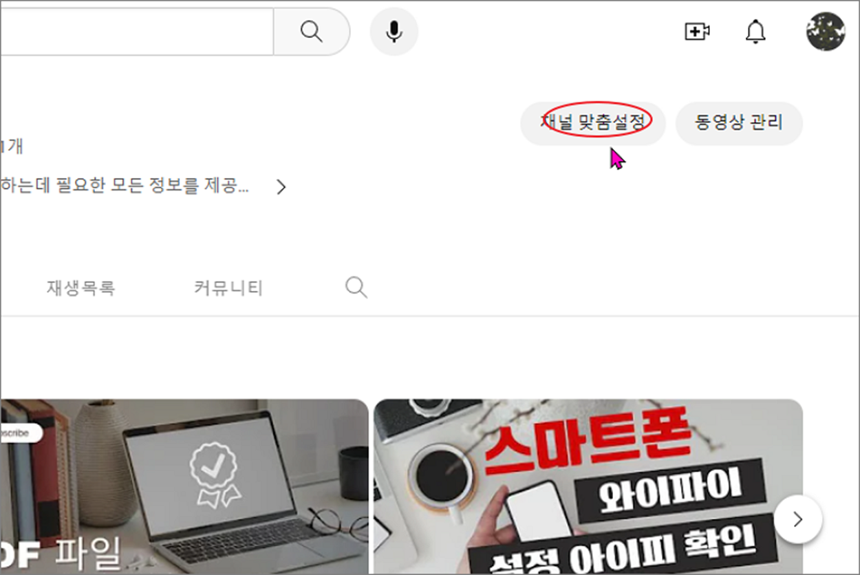 ▼ 채널 정보 수정을 위해서 오른쪽 상단에 있는 "채널 맞춤설정" 메뉴를 클릭합니다.