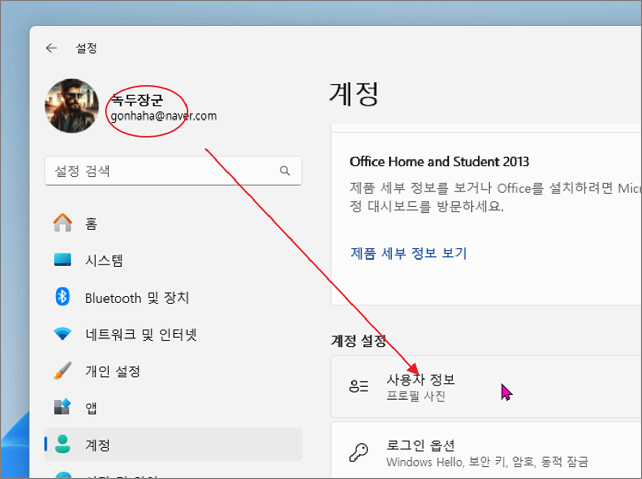 ▼ 다음은 이것과 반대로 패스워드를 다시 설정해 보겠습니다. 설정 화면으로 가서 왼쪽 사이드에 "계정" 메뉴를 선택합니다. 계정 메뉴 목록에서 "로그인 옵션" 을 클릭합니다.
