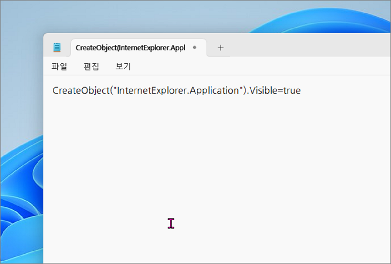 윈도우11 에는 기본적으로 인터넷 익스플로러 앱이 설치되어 있지 않습니다. 하지만 내장되어 있는 앱을 실행할 수 있는 방법은 있습니다. 필요한 경우 한 번씩 실행할 수 있도록 그 방법을 알려 드리겠습니다. 방법은 다음과 같습니다. 비주얼 베이직 스크립트 파일을 만들어서 매번 스크립트를 실행하고 브라우저를 띄우는 방식입니다.