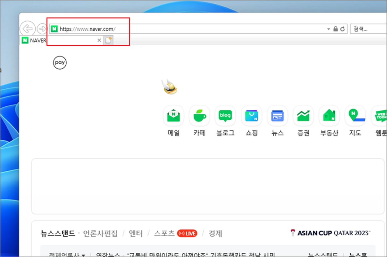 ▼ 주소 입력창에 원하는 사이트로 접속해 봅니다. 정상적으로 동작하는 것을 확인할 수 있습니다.