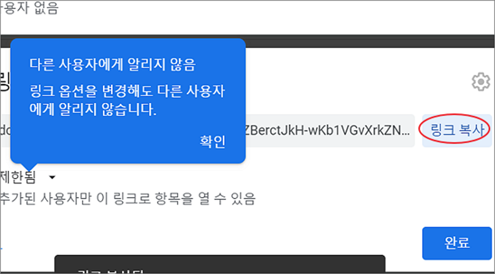 ▼ 링크 보기에 있는 URL 옆에 “링크 복사” 버튼을 눌러 클립보드에 저장합니다.