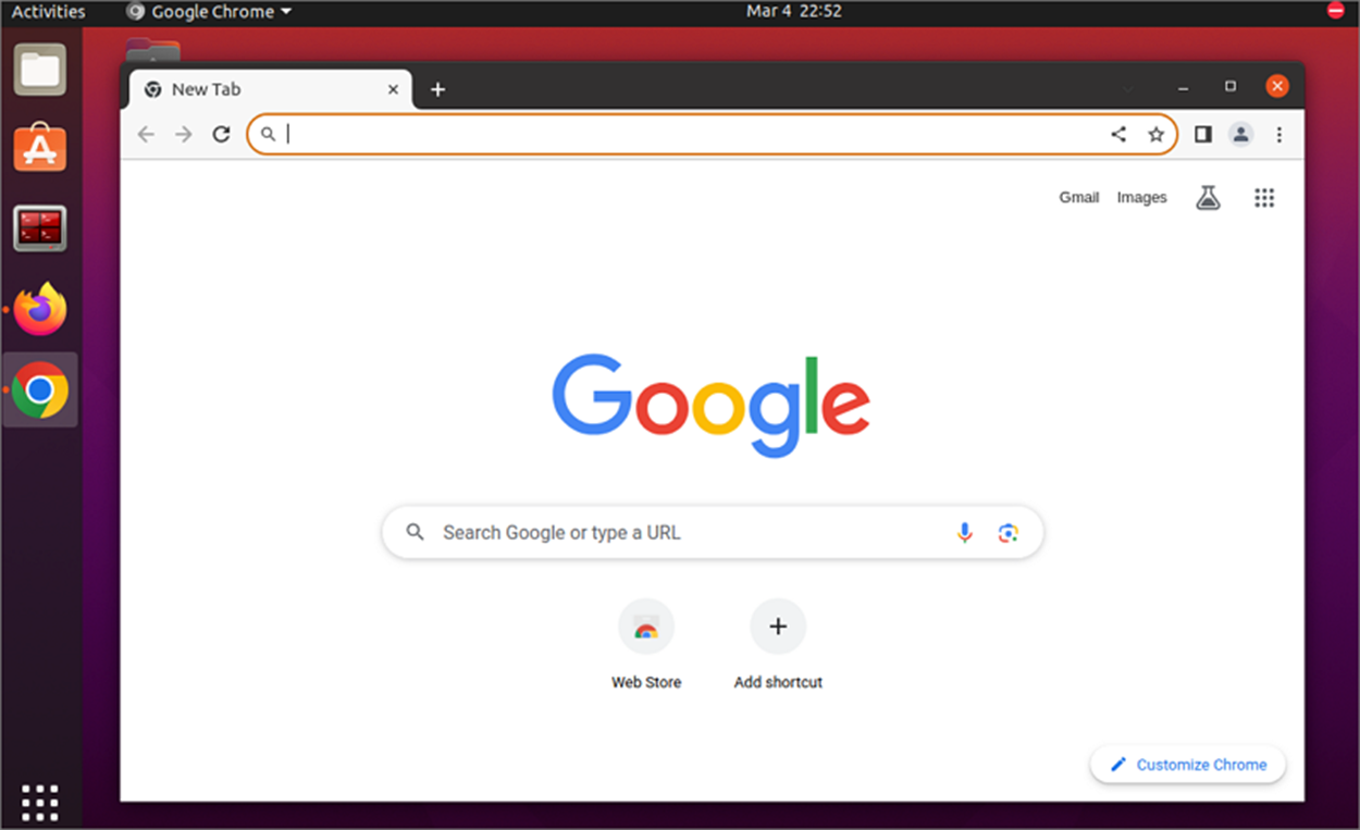 ▼ 정상적으로 크롬 브라우저를 실행한 결과는 다음과 같습니다. 이상으로 우분투에서 deb 확장자 파일을 다운받아 크롬 브라우저를 설치해 보았습니다.