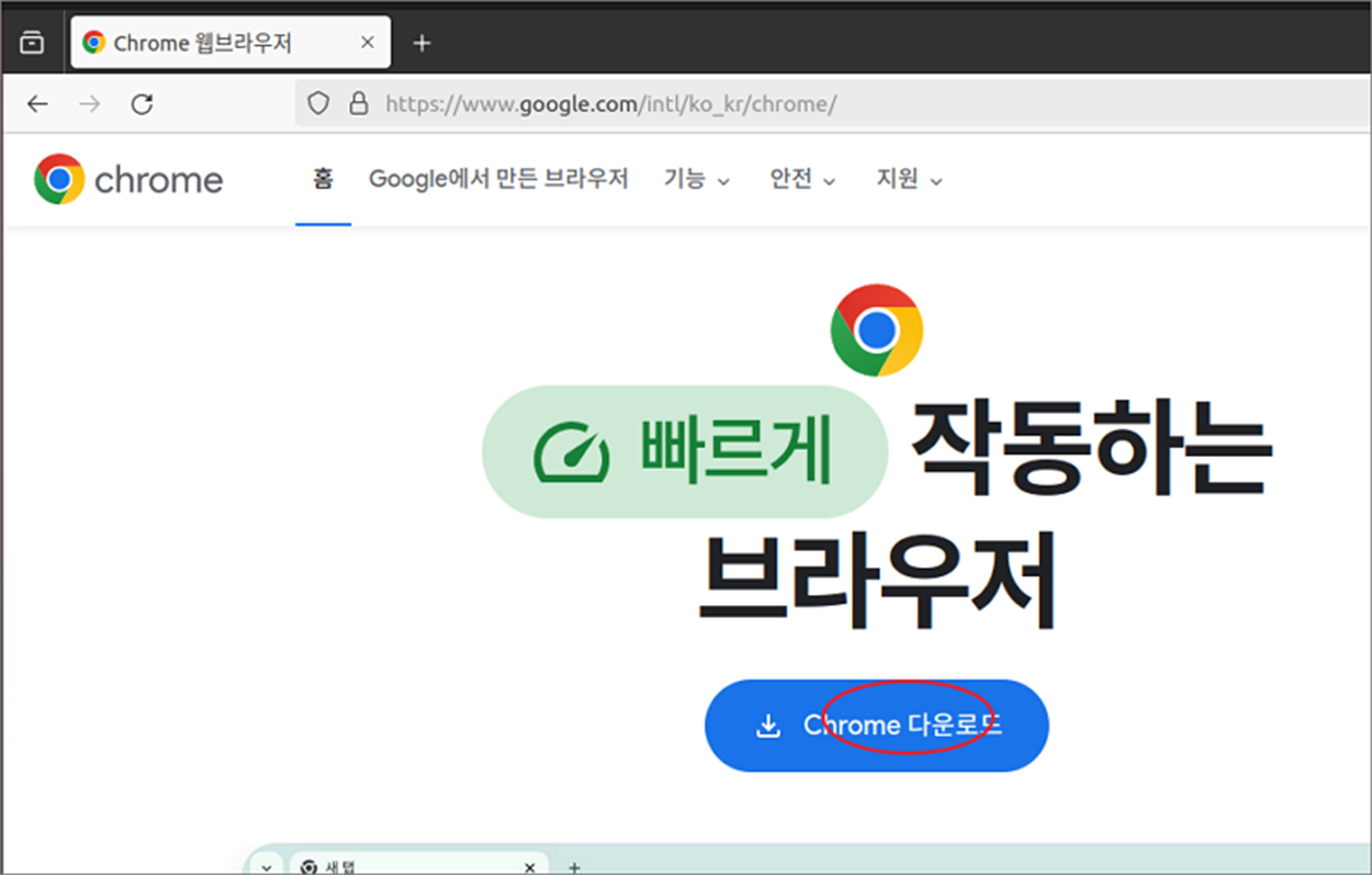 ▼ 콘솔 명령어가 아닌 웹 브라우저를 통해 크롬을 설치해 보도록 하겠습니다. 구글 검색에서 크롬 다운로드 페이지로 접속합니다.