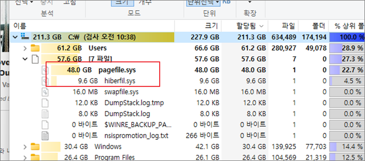 윈도우가 설치된 C 드라이브의 공간이 부족해서 점검한 결과 pagefile.sys, hiberfil.sys 두 파일의 용량이 크다는 것을 알았습니다. 해당 파일이 무엇이며, 어떻게 삭제해야 되는지 알아보겠습니다.
