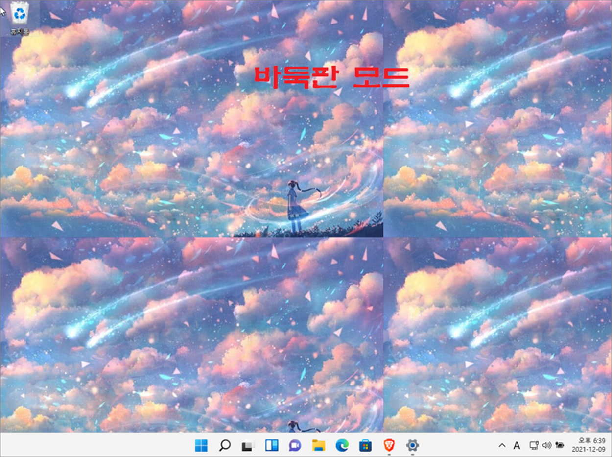 ▼ 바둑판 모드는 이미지의 빈 공간을 반복해서 채웁니다. 바탕화면에 이미지를 여러 장 반복해서 배치할 수 있는 크기의 이미지일 때 사용할 만 합니다.