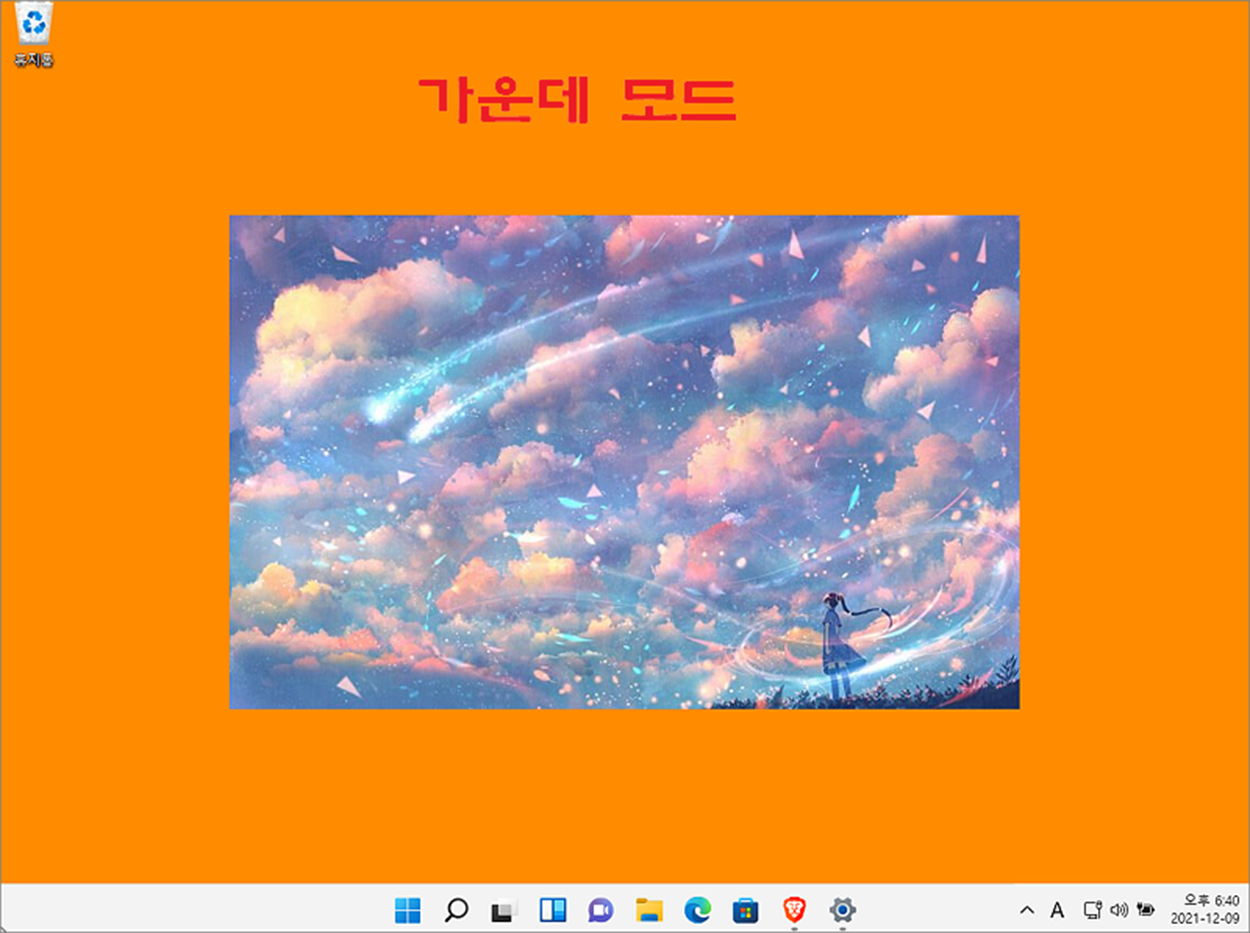 ▼ 가운데 모드는 이미지의 크기만큼만 바탕화면 가운데에 표시합니다.