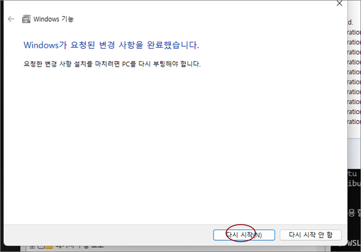 ▼ 설치가 끝나면 마지막으로 윈도우를 다시 시작해야 합니다. 한번 더 작업 하던 내용들을 백업했는지 체크하고 윈도우를 재시작해 줍니다.