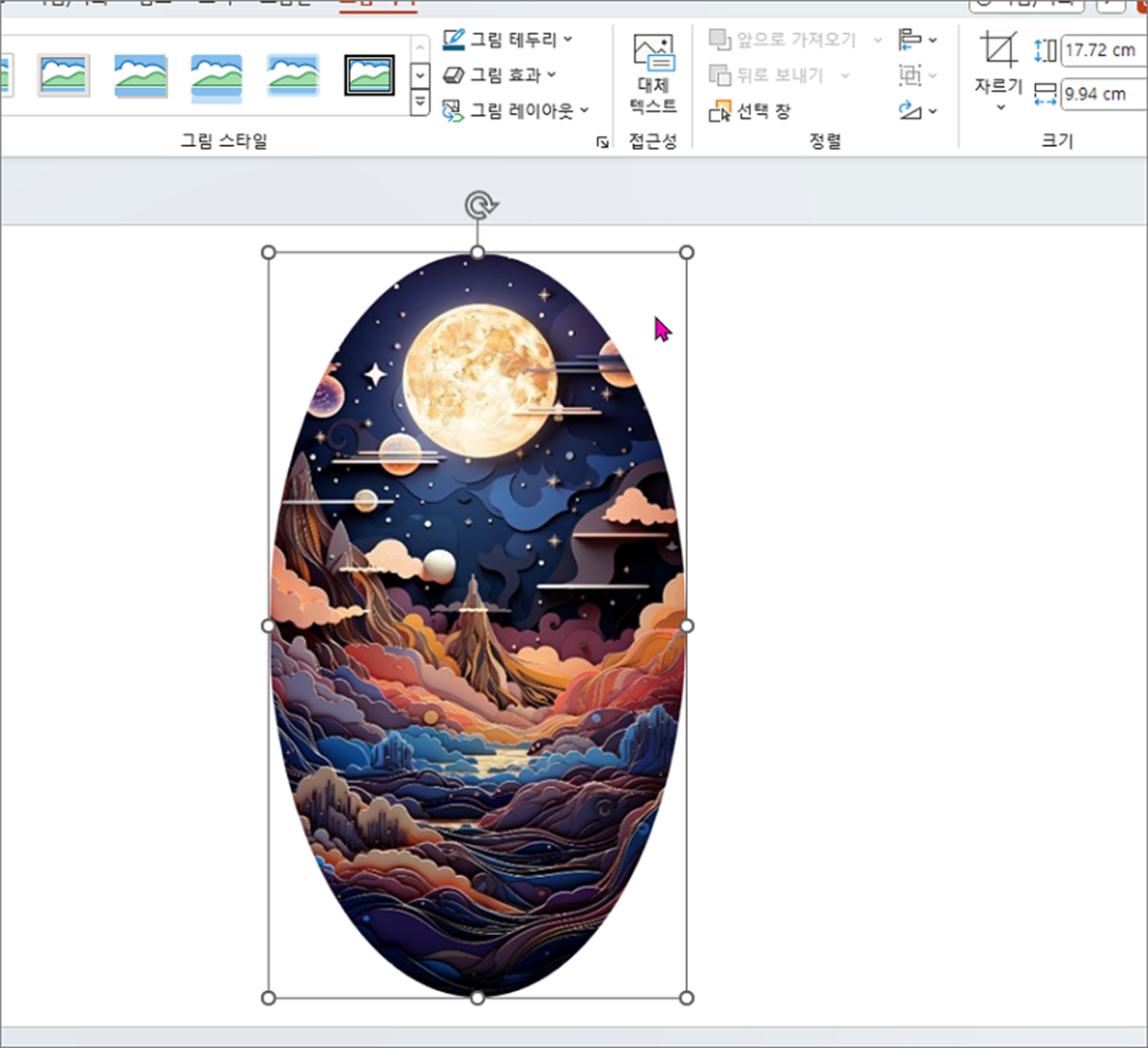 ▼ 선택한 도형에 맞춰서 이미지를 자릅니다.