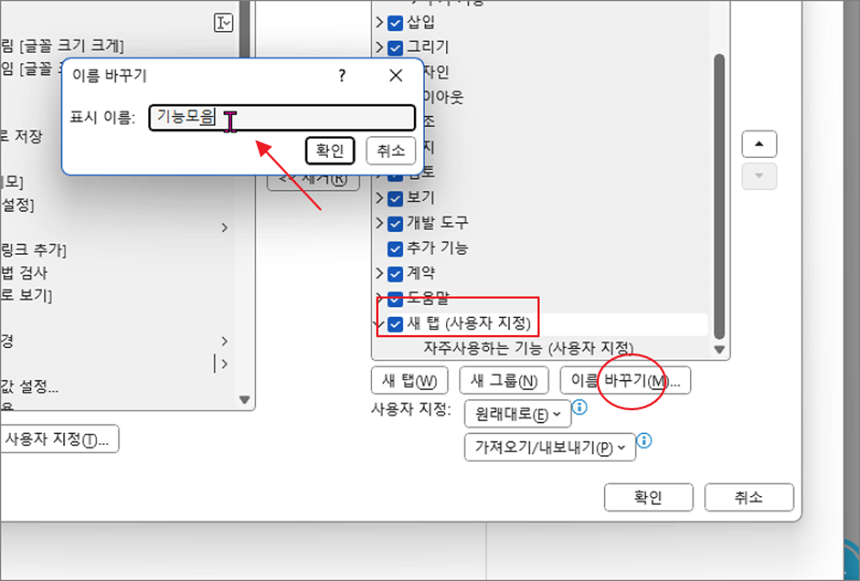 | ◎ 새 탭과 리본 메뉴 추가하기 |