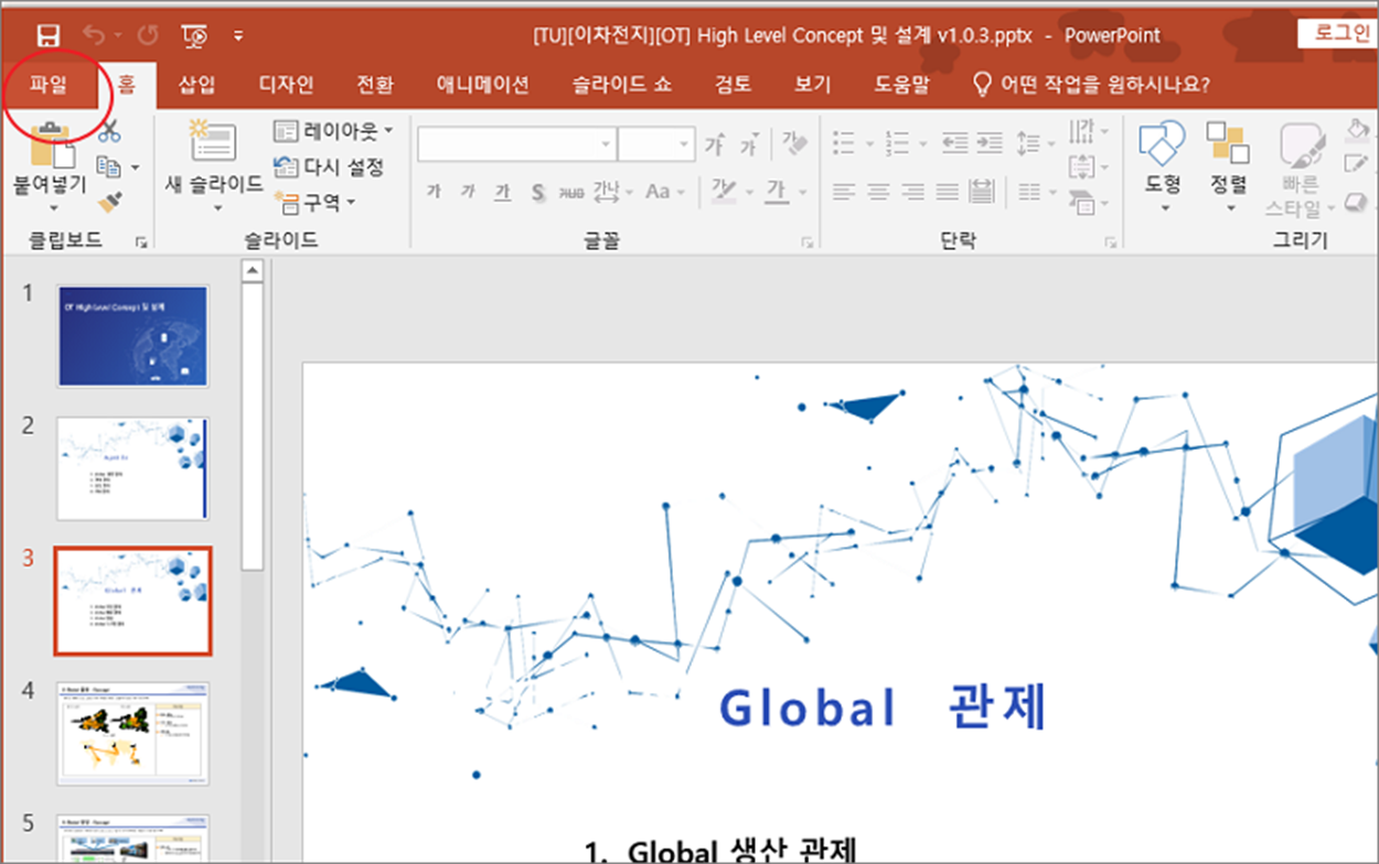 ▼ 먼저, 파워포인트 프로그램을 실행합니다. 바탕화면이나 시작 메뉴에서 파워포인트 아이콘을 클릭하여 프로그램을 엽니다. 그리고 상단 “파일” 탭을 클릭합니다.
