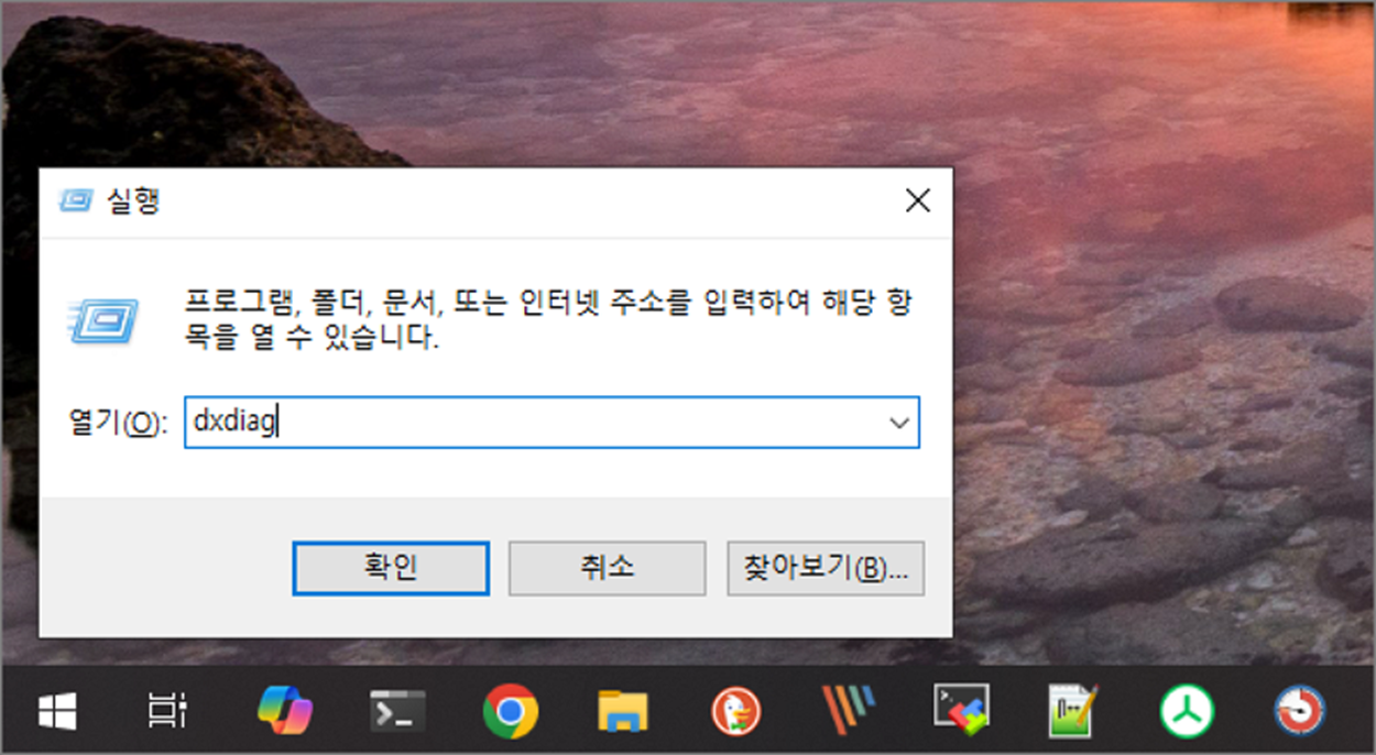 2. dxdiag를 입력하고 Enter 키를 누릅니다.