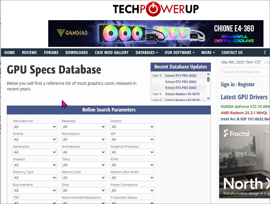 - TechPowerUp: 세부적인 스펙과 성능 비교, 전력 소모량까지 확인 가능