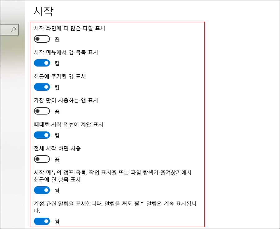 4. 시작 메뉴 사용자 지정