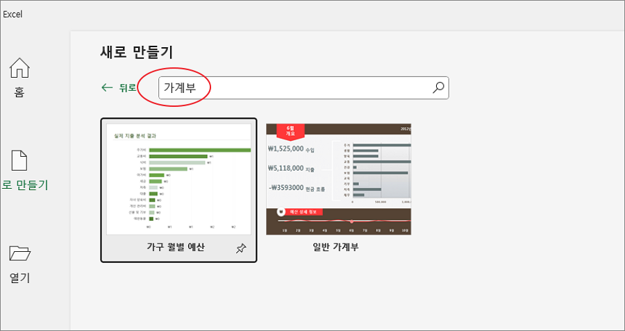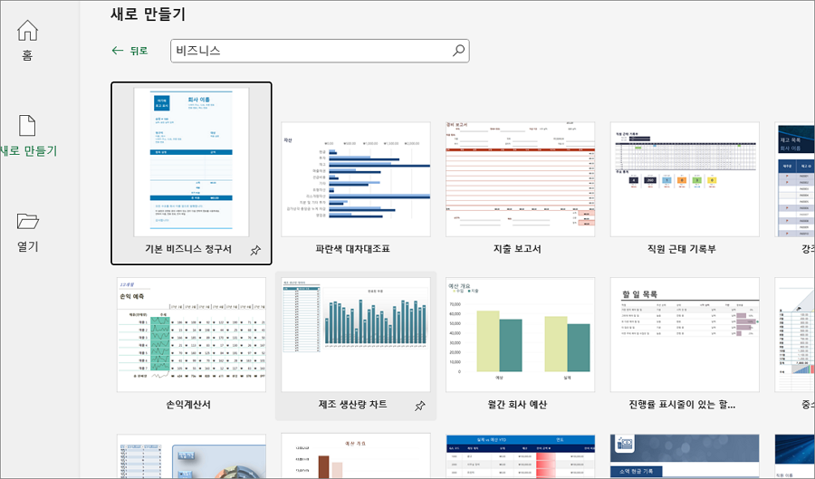 검색창에 ‘가계부’, ‘일정’, ‘견적서’ 등 원하는 문서의 이름을 입력하면 관련된 서식을 빠르게 찾을 수 있습니다.
