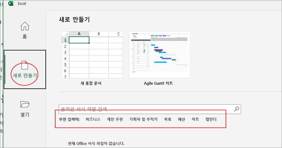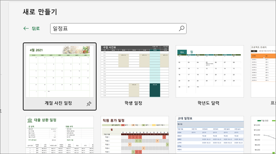 엑셀을 실행한 후 ‘새로 만들기’ 화면에서 ‘추천 서식’ 탭을 선택하면 다양한 서식이 나타납니다. 이곳에는 일정표, 송장, 이력서, 가계부, 프로젝트 관리표 등 다양한 카테고리의 서식들이 모여 있습니다.