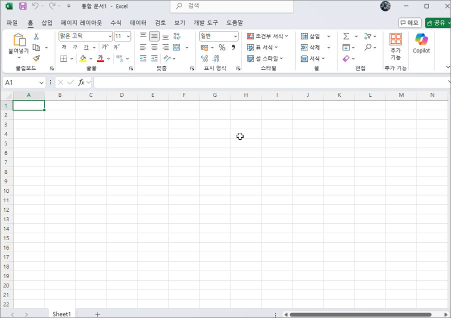 이후부터 엑셀을 실행하면 시작 화면 없이 바로 빈 문서가 열리게 됩니다.