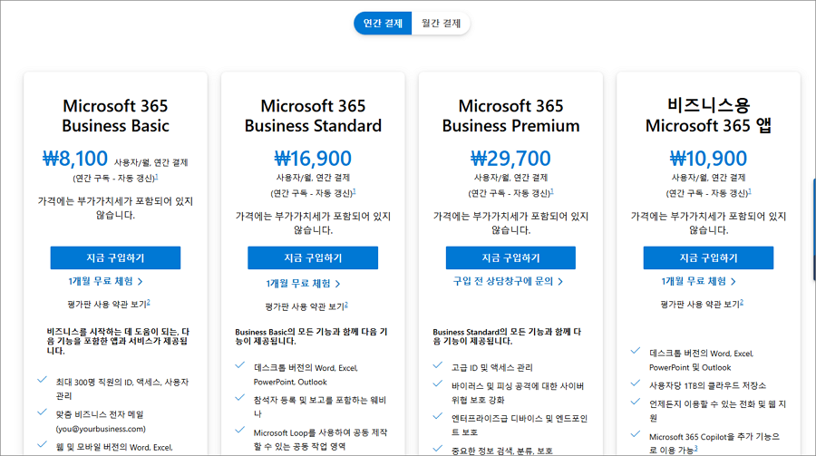 https://www.microsoft.com/ko-kr/microsoft-365/business/compare-all-microsoft-365-business-products