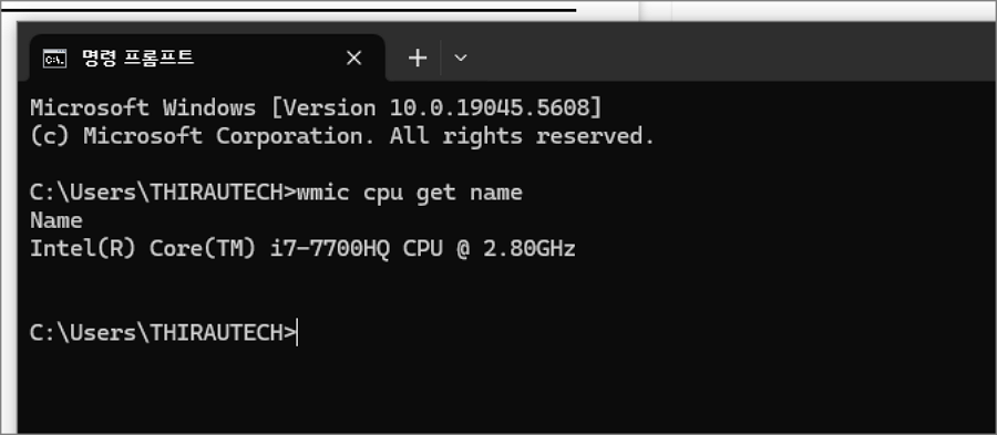 이 명령어를 입력하면 CPU 이름만 간단히 출력됩니다. 다른 정보 없이 모델명만 알고 싶을 때 유용합니다.