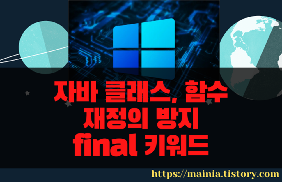 final 키워드는 주로 클래스나 함수의 재정의를 막기 위해서 사용됩니다. 또는 로컬변수와 함수에 사용해서 값을 변경하지 못하도록 합니다. final 이 의미하는 단어의 뜻처럼 더 이상 변경하면 안 된다는 것을 명시하는 것입니다. 그래서 상수로 사용할 변수 앞에 final 을 붙이는 것입니다. 프로그래머의 실수를 줄이기 위해 프로그램하는 과정에서 값을 변경하지 못하도록 방지하는 것이죠.