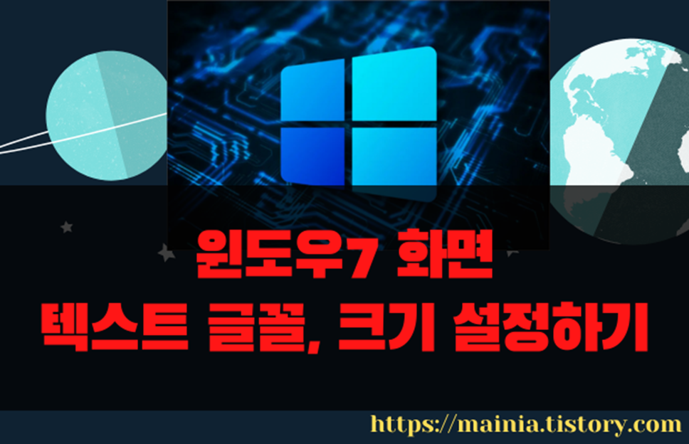 윈도우를 설치하고 나면 화면에 나오는 텍스트와 글꼴은 기본적으로 9pt 와 맑은 고딕입니다. 너무 작아서 잘 보이지 않는 사람들은 글꼴의 크기를 조절할 수 있습니다. 크게 두 가지 방법이 있습니다. 첫 번째는 글자의 크기만 키우는 것입니다. 화면에 나타나는 아이콘이나 이미지, 창의 크기는 변하지 않습니다. 두 번째 방법은 해상도를 줄이는 것입니다. 그러면 윈도우에 나타나는 모든 글자와 이미지가 커집니다.