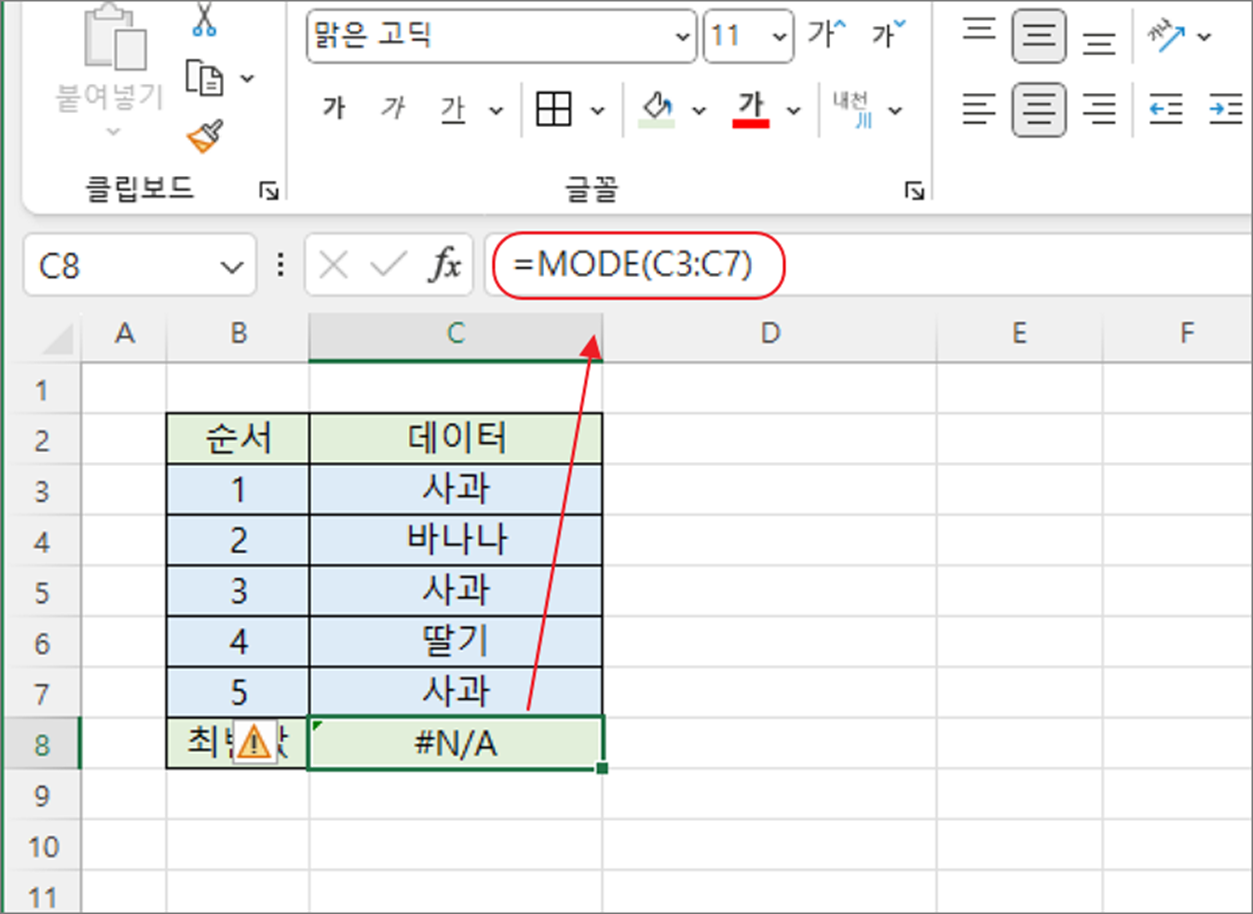 엑셀 Excel 함수 MODE 자주 발생하는 값 찾기