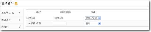 왼쪽메뉴에 보면 공개정보 아래에 멤버관리 메뉴가 있다. 클릭해 들어가면 사용자