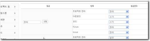 다음 메뉴는 등급관리인데 등급리스트 목록에 포함된 이름들이 가지는 권한에 대한