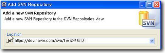 접근가능자 : https://dev.naver.com/svn/[프로젝트ID]