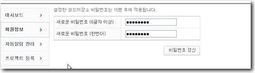 코드저장소 비밀번호 설정 버튼을 클릭해 비밀번호를 갱신한다.