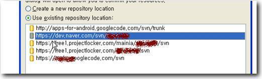 리스트중 SVN 을 선택하고 위에서 추가한 네이버 주소를 타켓으로 다음을 진행한다.
