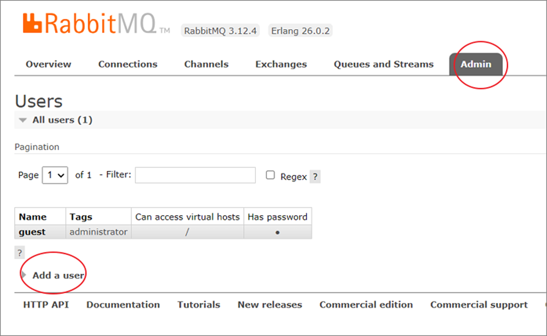 ▼ 계정 추가를 위해 계정 관리 페이지인 Admin 탭으로 이동합니다. 화면 아래 Add a user 버튼을 눌러 필요한 계정을 추가합니다.