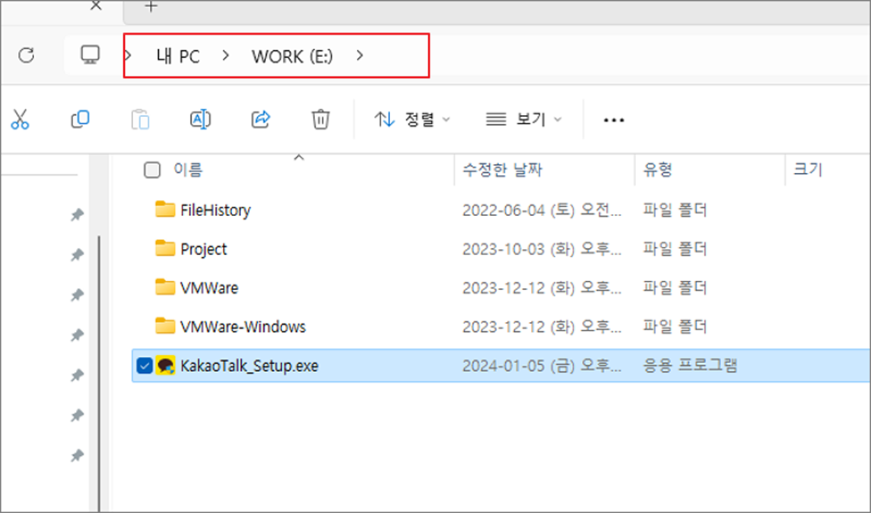 ▼ 방금 설정 변경한 E 드라이브에 파일을 다운받은 것을 확인할 수 있습니다.