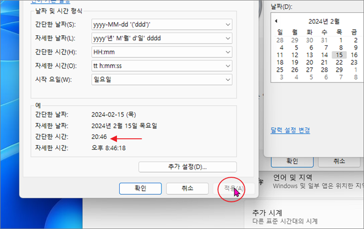 윈도우11 작업표시줄 시계 초 단위 표시, 24시간 형태 표시하기