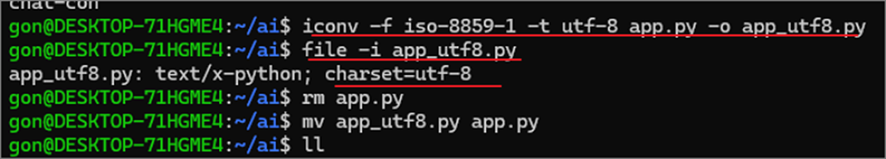 mv app_utf8.py app.py // 인코딩을 변경해서 만든 파일의 이름을 변경